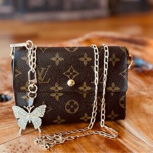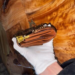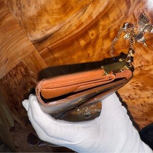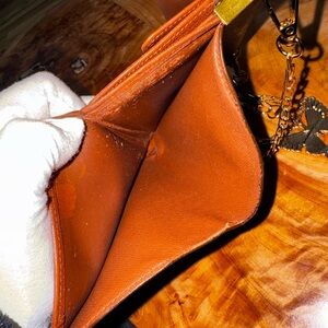 this is a pre-love vintage item. It has been converted to a Crossbody comes with a 47 inch unbranded chain /unbranded hardware unbranded charm/wallet is in good working condition. It has been cleaned and conditioned with leather cleaner/snap works good/ exterior normal no major damage / interior wear. No major damages does have some scratches markings, parts have been touched up with Angela leather paint to improve the look etc./the edges have been redone with edge coat to improve the look / does have wear ‼️see picture/ please keep in mind when purchasing this is a very old vintage | like all things with the age. It will have bumps and bruises thank you.