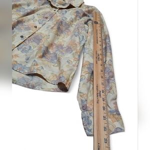Chic floral design. Soft cream tones. Perfect for casual elegance. Excellent used condition without rips or stains. This is a real find.