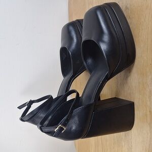 Wild Fable Black Square Toe Platform Block Heels Pumps Ankle Strap Size 8.5