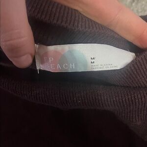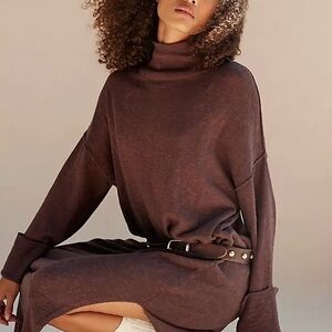 FP Beach Brown Turtleneck Midi Cotton Linen Oversized Sweater Dress Medium