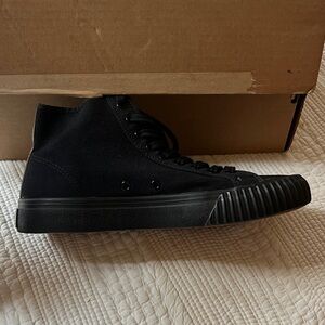 Classic black canvas sneakers with iconic logo. Durable rubber sole. Perfect for casual wear. 8 men’s / 9.5 women. Shoes are like new or nearly new. I really don’t think they’ve ever been worn.