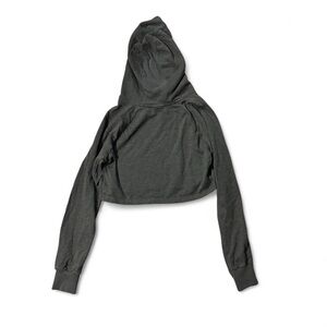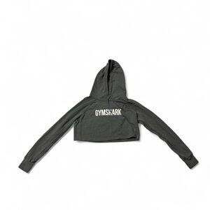 Chic Gymshark cropped hoodie in charcoal. Ideal for gym or casual outings. Size Small