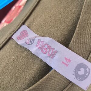 Bugui Long Sleeve Tee. Love to Shine. 100% cotton Olive green Size 14 L girl NWT