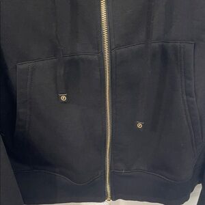 Sleek black zip-up sweater by Fresh. Features a comfortable hood and front pockets. Ideal for casual wear.