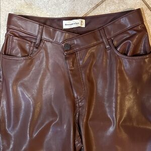 Abercrombie & Fitch Oxblood Faux Leather Crossover Straight Fit Pants 6 Jeans