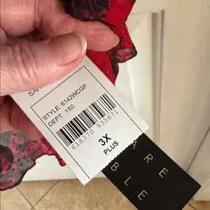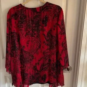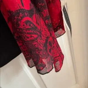 Sara Michelle NWT Red & Black 3X Plus Sheer Chiffon Overlay Top Sparkle
