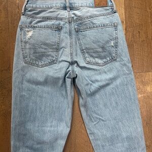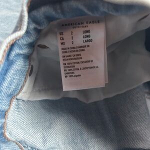 American Eagle 90s Straight Jeans Light Wash Distressed Ripped Denim Size 2 Long