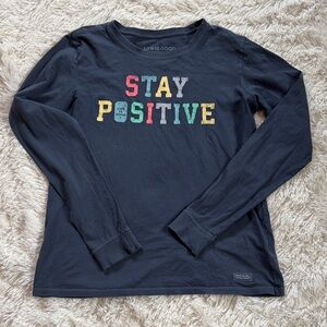 Navy long sleeve tee with 'Stay Positive' print from Life is Good. 100% cotton. Soft and comfy. Excellent condition.