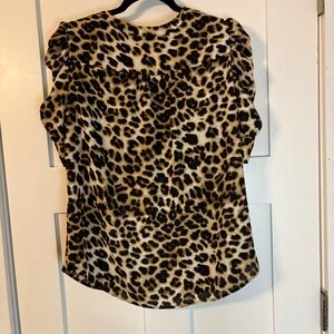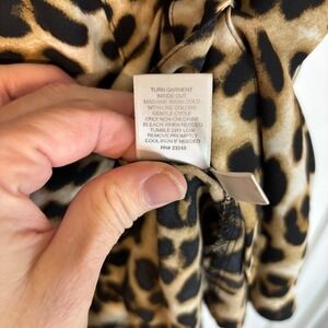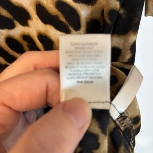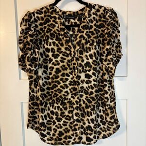 New York & Co Leopard Print Ruched Sleeve Button Up Blouse Tan Black Medium Y2K