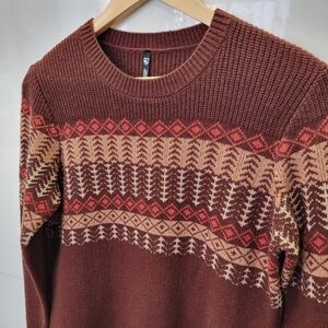 KÜHL Nordik Merino Wool Fair Isle Crewneck Sweater Cinnabar Brown - Women's M