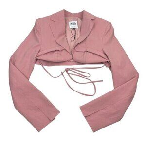Zara Pink Stitch Detail Cropped Blazer Medium