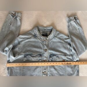 Zyia Jacket Crossroad Light Blue Denim Performance Button Up Cool Wash Size XXL