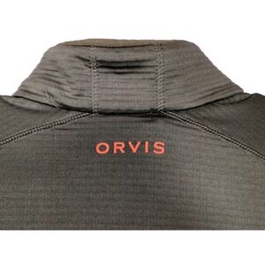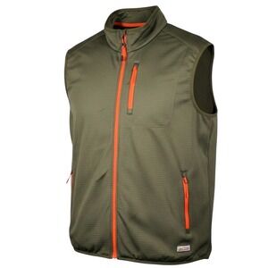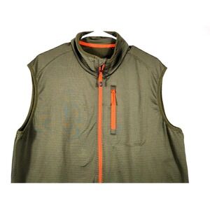 Orvis Size L Mens Grid Fleece Vest Olive Green Orange Full Zip Outdoor Hiking