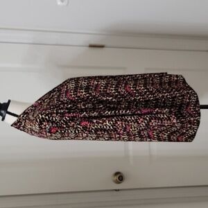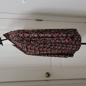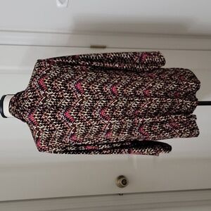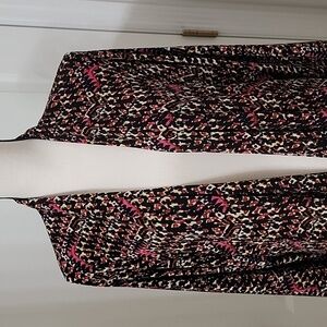 Chico's Travelers Size 2 (L-12) Multi-Color Open Cardigan Long Sleeve Slinky. Black, Pink, Rust and Cream make up this gorgous open front top. Excellent Used Condition, No Holes, Rips, Stains or Snags.