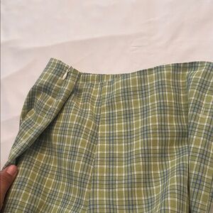 Stylish wide-leg pants. Green plaid pattern. Comfortable fit.