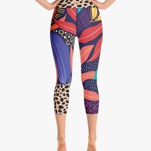 Like new Loony Legs Floral Leggings "Animal Leaves" Blue/Orange/Green