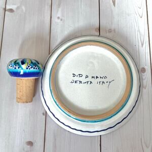 Beautiful hand painted small plate or coaster and wine stopper set. Floral Pattern. Back is marked DIP A MANO DERUTA ITALY