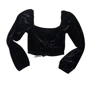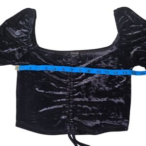 Forever 21 Y2K Black Velvet Crop Top With Draw String Front Small 14in P2P
