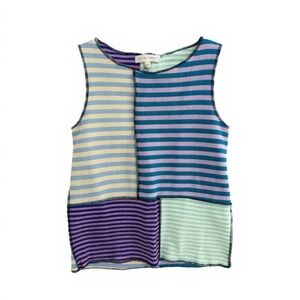 High Neck Pieced Tank Top GILDED INTENT Striped Color Block Sleeveless L #1886