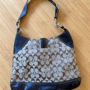 Coach Brown Signature Canvas Shoulder Bag with Dark Leather Trim