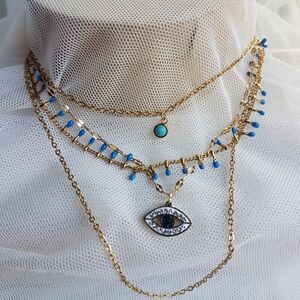 #Swarovski #crystal #symbolic #gold #evileye #necklace #stainless #steel #layered #turquoise #blue #contemporary #modern #birthday #gift #casual