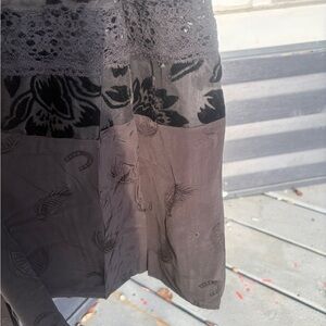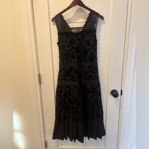Small flaw- small round mark on bottom back side of the dress. As seen in the last photo. It is kind of stick. I have not had it dry cleaned or tried to remove it with anything other than water.