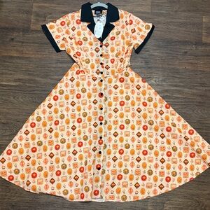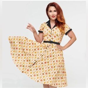 This dress is no longer available from the retailer, making it a great find for collectors or fans of Unique Vintage’s novelty prints.