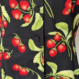 A stunning retro-inspired blouse featuring strawberries fresh from the garden β truly eye-catching and impossible to look away from.