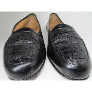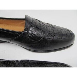 Magnanni Linea Italia Mens Black Leather Half Strap Lizard Loafers Size US 10 M