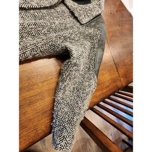 1980s VTG WOMENS THICK WOOL & LEATHER COAT SHOULDER PADS HIDDEN BUTTONS RETRO
