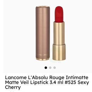 Experience the luxurious feel of Lancome's L'Absolu Rouge Intimate Matte Veil Lipstick in Sexy Cherry # 525 This vibrant red shade offers a bold, long-lasting color with a smooth matte finish. Perfect for any occasion.