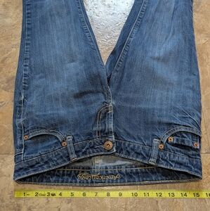 Experience timeless style with these American Eagle Outfitters straight 77 cut jeans, crafted in a rich blue hue. The subtle fading adds a casual touch, while the standard weight denim ensures comfort and durability.