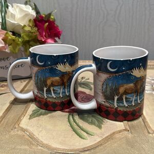 Set of Two Downeast Concepts Cape Shore Moose Moon Stars Cabin Mugs