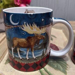 Set of Two Cape Shore Moose Moon Stars Cabin Mugs