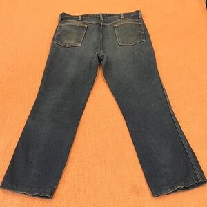 Good used condition, they have been hemmed to 29.25” as seen in photo. Waist is 35” rise 12” inseam / length 29.25”, made in USA cotton blend.
