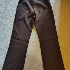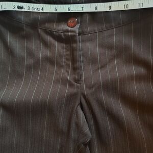This Jodi Kristopher Brown Pinstripe Women's Regular Pant Suit is a stylish and classic 2 piece set perfect for workwear and business occasions. The jacket features a regular length with a white and blue pinstripe pattern, long sleeves, and a double-breasted front with a three-button closure. Made by the brand Jodi Kristopher this suit includes a lined jacket with pockets and matching pants. The brown color; white and blue pinstripe pattern add a touch of sophistication to the classic pant suit, making it a versatile and timeless addition to any woman's wardrobe.