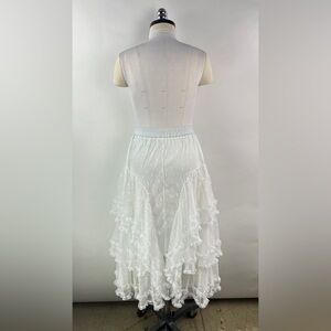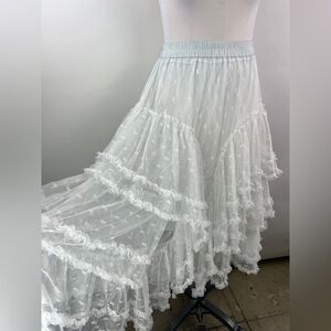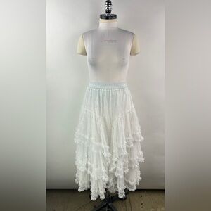 Mesh Lace Ruffled Midi Skirt with elastic waist band and underlining in white.