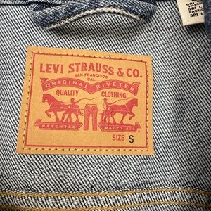 Stylish Levi's jacket in blue denim. Features iconic patch and durable stitching. Size small but oversized fit. Classic and always on trend! Excellent condition!!