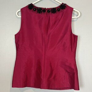 Talbots Fuchsia Silk Shell Blouse Sleeveless Beaded Size 2 NWT $139