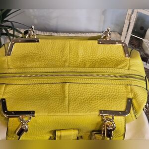 Coach Madison Pinnacle Pebbled Leather Lily Handbag (Style No. 22330), in a vibrant Chartreuse/Kiwi yellow-green leather.