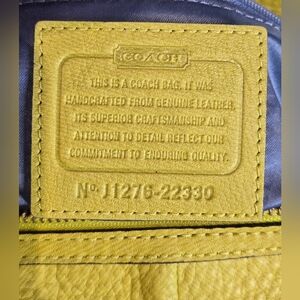 It features an oversized buckle front pocket, and two original hangtags. The classic Coach horse-and-carriage hangtag and a large leather hangtag.