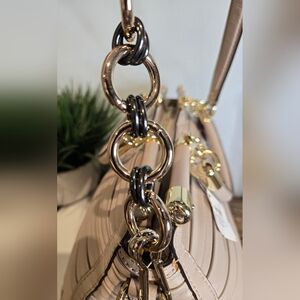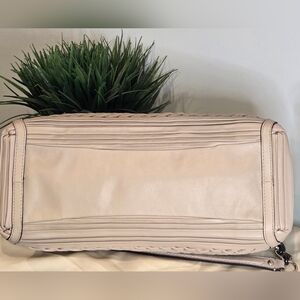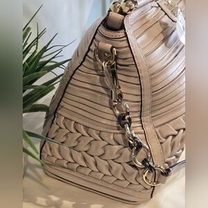 Coach Madison Caroline satchel in pleated gathered leather. It is a limited edition carryall characterized by its intricate hand-finished pleated and gathered leather detailing and polished hardware.
