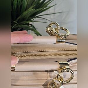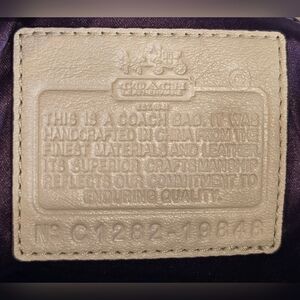 Its exquisite features includes roll framed top, Coach signature Horse & Carraige logo, a zip-top closure, purple satin lining, interior multifunction pockets, and top handles with approximately a 6" drop. It comes with a removable shoulder/crossbody strap.