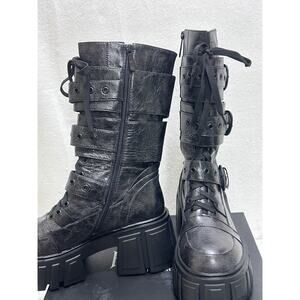 Killstar KIHILIST RUPTURA Boots Black Size 9 Textured Design Faux Leather Gothic Whimsygoth Emo Grunge Punk Rocker Moto Streetwear.