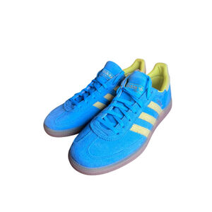 Stylish adidas sneakers. Bright blue with yellow accents. Comfortable and trendy. Tag taken off but haven’t been used. Bought incorrect size