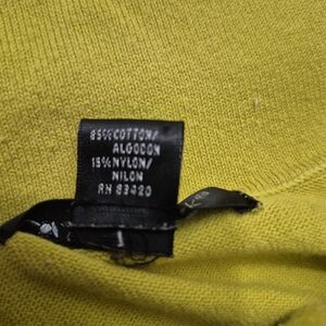 Beautiful lime green tunic sweater by August Silk. Soft lightweight knit with a flattering swing silhouette and stylish cowl neckline. Features two front patch pockets with decorative buttons and 3/4 sleeves. Great layering piece for spring or fall.