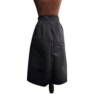 Knee-length skirt in woven fabric with a slight sheen. High waist, concealed zipper at back of waistband, and pleats at front and back. Unlined.