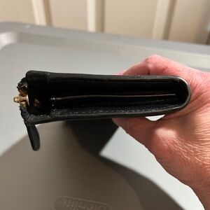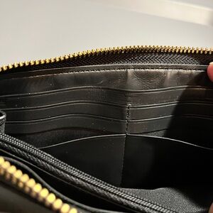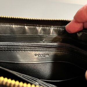 Beautiful Coach black floral zip-around wallet with gold hardware.