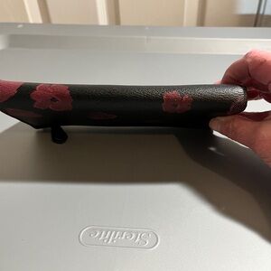 Coach Black Floral Zip Around Wallet Gold Hardware