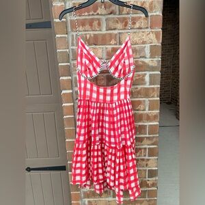 Mo Maya Runa Check Print V- Neckline Sleeveless Mini Dress NWT